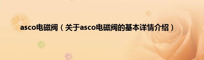 本文关于asco电磁阀的基本详情介绍就讲解完毕,希望对大家有所帮助。
