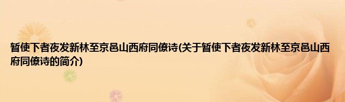本文关于暂使下者夜发新林至京邑山西府同僚诗的简介就讲解完毕,希望对大家有所帮助。