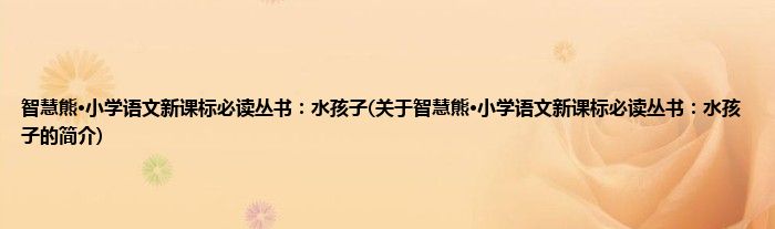 本文关于智慧熊·小学语文新课标必读丛书:水孩子的简介就讲解完毕,希望对大家有所帮助。
