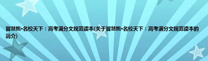 本文关于智慧熊·名校天下:高考满分文规范读本的简介就讲解完毕,希望对大家有所帮助。