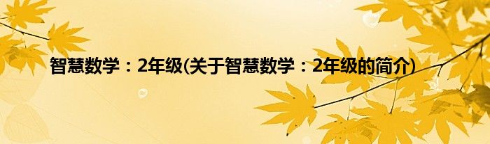 本文关于智慧数学:2年级的简介就讲解完毕,希望对大家有所帮助。