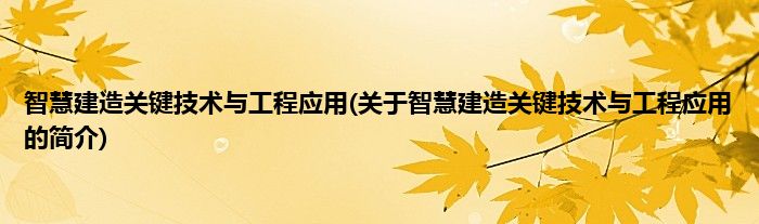 本文关于智慧建造关键技术与工程应用的简介就讲解完毕,希望对大家有所帮助。