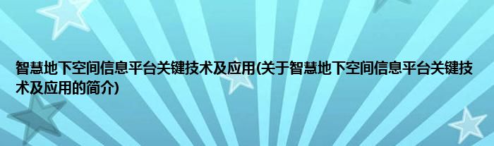 大家好,智慧地下空间信息平台关键技术及应用,关于智慧地下空间信息平台关键技术及应用的简介很多人还不知道,现在让我们一起来看看吧!