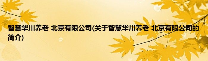 本文关于智慧华川养老 北京有限公司的简介就讲解完毕,希望对大家有所帮助。
