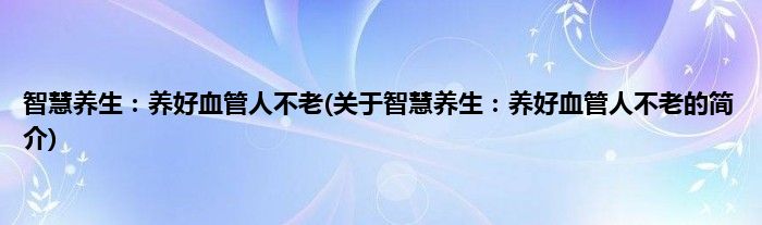 本文关于智慧养生:养好血管人不老的简介就讲解完毕,希望对大家有所帮助。