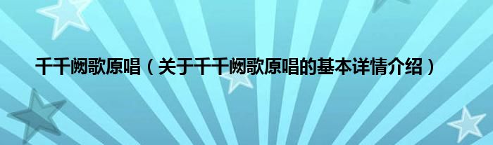 大家好我是小蝌蚪,千千阙歌原唱,关于千千阙歌原唱的基本详情介绍很多人还不知道,那么现在让我们一起来看看吧!