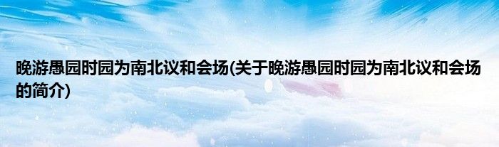 本文关于晚游愚园时园为南北议和会场的简介就讲解完毕,希望对大家有所帮助。