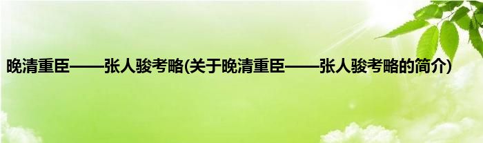 本文关于晚清重臣——张人骏考略的简介就讲解完毕,希望对大家有所帮助。