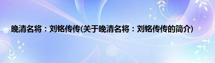 本文关于晚清名将:刘铭传传的简介就讲解完毕,希望对大家有所帮助。