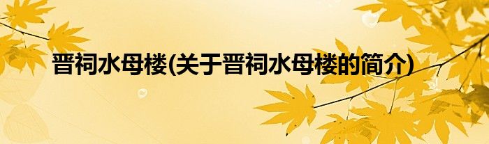 本文关于晋祠水母楼的简介就讲解完毕,希望对大家有所帮助。
