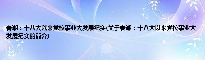 本文关于春潮:十八大以来党校事业大发展纪实的简介就讲解完毕,希望对大家有所帮助。