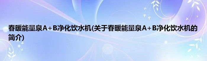 本文关于春暖能量泉A+B净化饮水机的简介就讲解完毕,希望对大家有所帮助。
