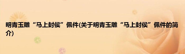 明青玉雕“马上封侯”佩件(关于明青玉雕“马上封侯”佩件的简介)