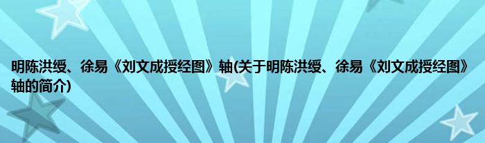 本文关于明陈洪绶、徐易《刘文成授经图》轴的简介就讲解完毕,希望对大家有所帮助。