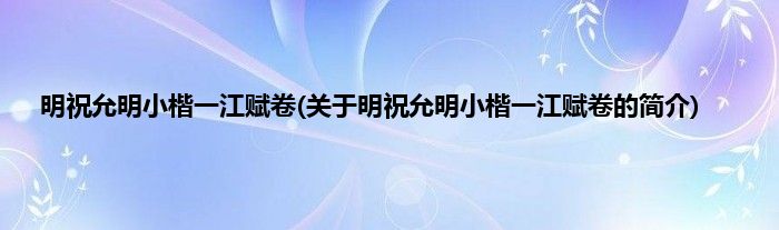 大家好,明祝允明小楷一江赋卷,关于明祝允明小楷一江赋卷的简介很多人还不知道,现在让我们一起来看看吧!