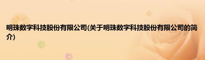 本文关于明珠数字科技股份有限公司的简介就讲解完毕,希望对大家有所帮助。