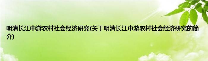 大家好,明清长江中游农村社会经济研究,关于明清长江中游农村社会经济研究的简介很多人还不知道,现在让我们一起来看看吧!