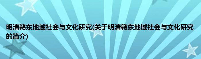 大家好,明清赣东地域社会与文化研究,关于明清赣东地域社会与文化研究的简介很多人还不知道,现在让我们一起来看看吧!