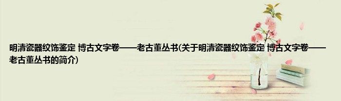 本文关于明清瓷器纹饰鉴定。博古文字卷——老古董丛书的简介就讲解完毕,希望对大家有所帮助。