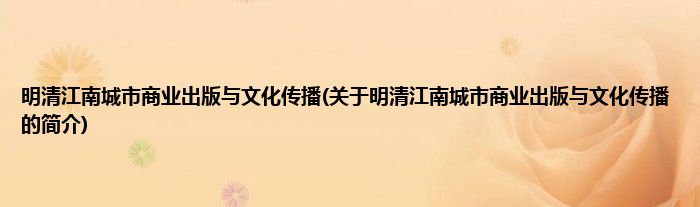 本文关于明清江南城市商业出版与文化传播的简介就讲解完毕,希望对大家有所帮助。