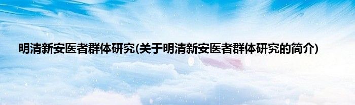 本文关于明清新安医者群体研究的简介就讲解完毕,希望对大家有所帮助。