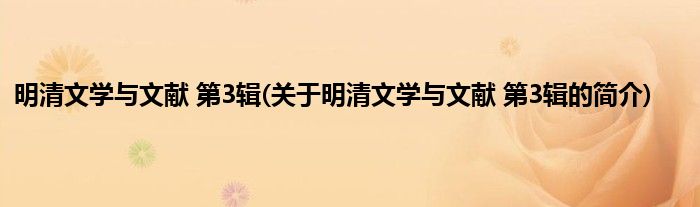 本文关于明清文学与文献 第3辑的简介就讲解完毕,希望对大家有所帮助。