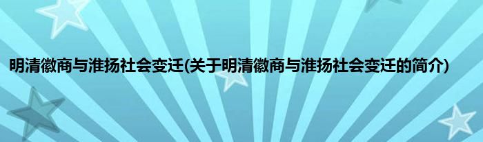 本文关于明清徽商与淮扬社会变迁的简介就讲解完毕,希望对大家有所帮助。