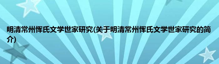 本文关于明清常州恽氏文学世家研究的简介就讲解完毕,希望对大家有所帮助。