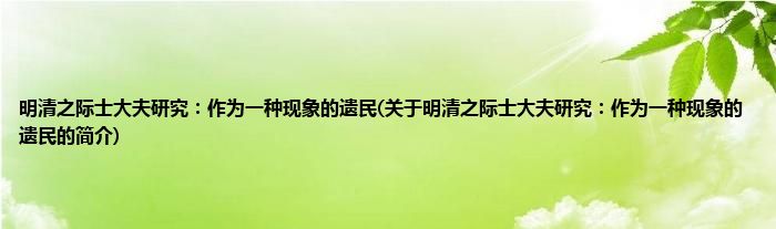 本文关于明清之际士大夫研究:作为一种现象的遗民的简介就讲解完毕,希望对大家有所帮助。