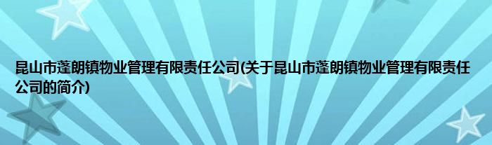 本文关于昆山市蓬朗镇物业管理有限责任公司的简介就讲解完毕,希望对大家有所帮助。