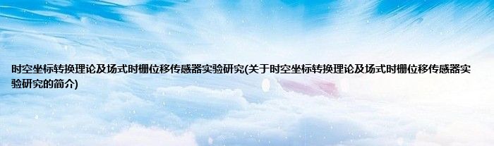 大家好,时空坐标转换理论及场式时栅位移传感器实验研究,关于时空坐标转换理论及场式时栅位移传感器实验研究的简介很多人还不知道,现在让我们一起来看看吧!
