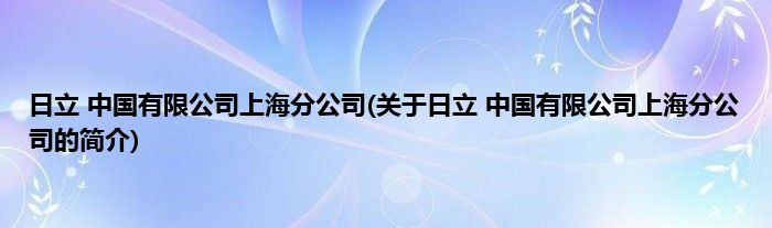 本文关于日立 中国有限公司上海分公司的简介就讲解完毕,希望对大家有所帮助。