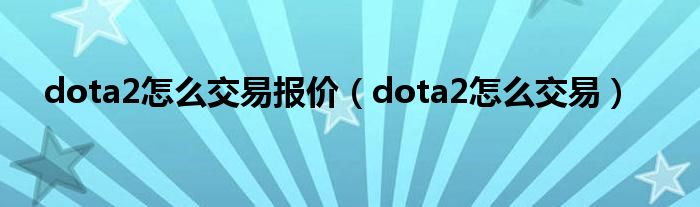 大家好,精选小编来为大家解答以上问题。dota2怎么交易报价,dota2怎么交易很多人还不知道,现在让我们一起来看看吧!