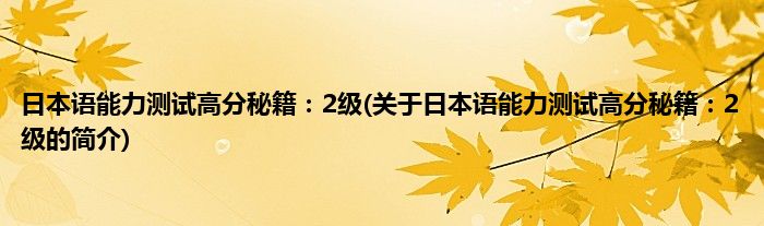 本文关于日本语能力测试高分秘籍:2级的简介就讲解完毕,希望对大家有所帮助。