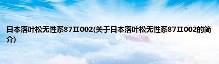 1、 日本落叶松无性系87Ⅱ002是松科、落叶松属植物,外文名Ribenluoyesongwuxingxi87Ⅱ002,产于清原。