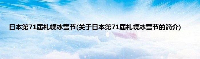 大家好,日本第71届札幌冰雪节,关于日本第71届札幌冰雪节的简介很多人还不知道,现在让我们一起来看看吧!
