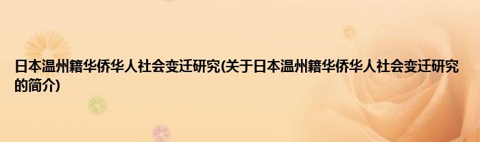 日本温州籍华侨华人社会变迁研究(关于日本温州籍华侨华人社会变迁研究的简介)