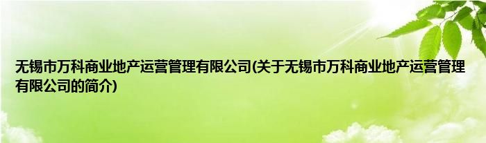 本文关于无锡市万科商业地产运营管理有限公司的简介就讲解完毕,希望对大家有所帮助。