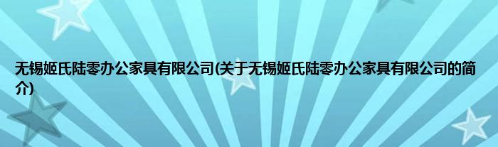 本文关于无锡姬氏陆零办公家具有限公司的简介就讲解完毕,希望对大家有所帮助。