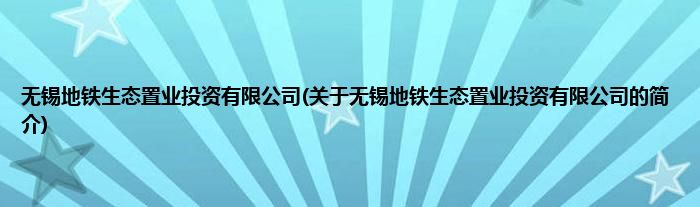 本文关于无锡地铁生态置业投资有限公司的简介就讲解完毕,希望对大家有所帮助。