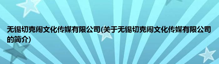 本文关于无锡切克闹文化传媒有限公司的简介就讲解完毕,希望对大家有所帮助。