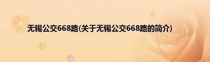 本文关于无锡公交668路的简介就讲解完毕,希望对大家有所帮助。