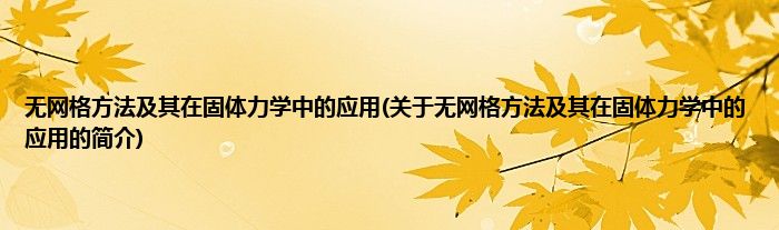 本文关于无网格方法及其在固体力学中的应用的简介就讲解完毕,希望对大家有所帮助。