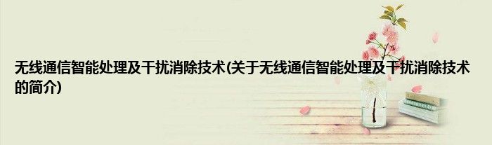 本文关于无线通信智能处理及干扰消除技术的简介就讲解完毕,希望对大家有所帮助。