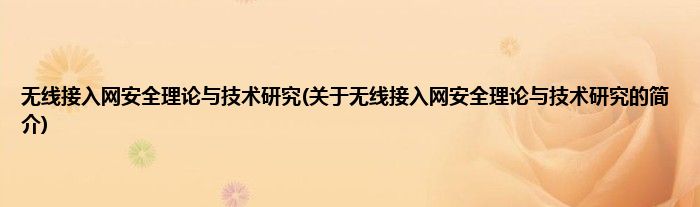 大家好,无线接入网安全理论与技术研究,关于无线接入网安全理论与技术研究的简介很多人还不知道,现在让我们一起来看看吧!