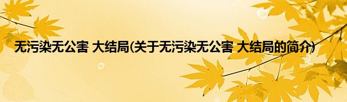 本文关于无污染无公害。大结局的简介就讲解完毕,希望对大家有所帮助。