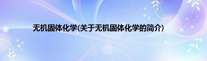大家好,无机固体化学,关于无机固体化学的简介很多人还不知道,现在让我们一起来看看吧! 1、 无机固体化学。2、是一个化学术语。本文关于无机固体化学的简介就讲解完毕,希望对大家有所帮助。