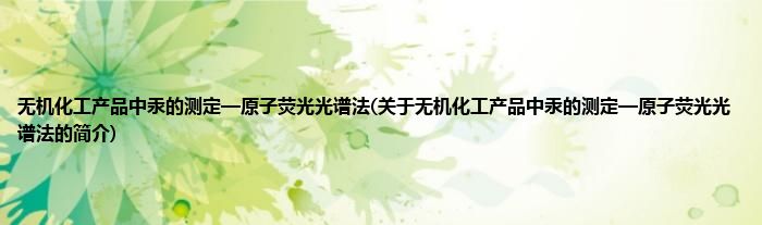 大家好,无机化工产品中汞的测定—原子荧光光谱法,关于无机化工产品中汞的测定—原子荧光光谱法的简介很多人还不知道,现在让我们一起来看看吧!