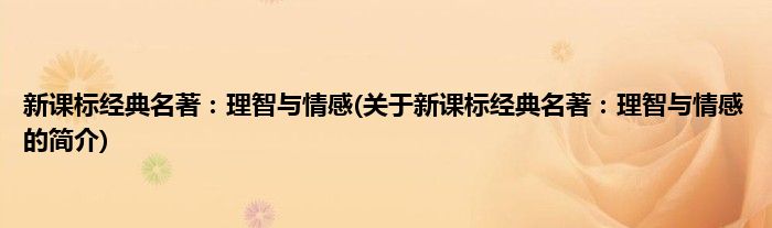 本文关于新课标经典名著:理智与情感的简介就讲解完毕,希望对大家有所帮助。