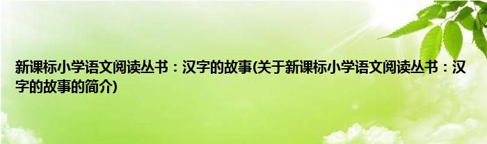 本文关于新课标小学语文阅读丛书:汉字的故事的简介就讲解完毕,希望对大家有所帮助。